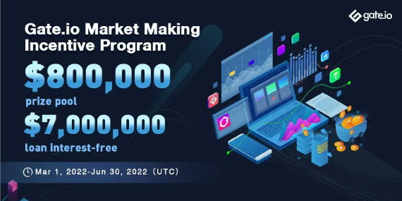 · From Jan 24th to May 31st, 2022: Gate Market Maker Incentive Program. Up to $200,000 monthly prize pool, and large interest-free loans