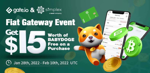 · From Jan 28th to Mar 4th, 2022: Gate Fiat Gateway Marathon | Get $15 Worth of BABYDOGE Free on a Purchase via Simplex!