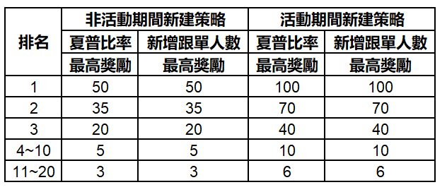 <3>活動結束時,對每個策略的策略夏普率和新增的跟單人數進行排名
