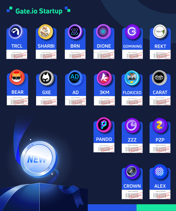 From April 16 to April 30, Gate listed many projects on our Startup platform, including TRCL, SHARBI, BRN, DIONE, GOMINING, REKT, BEAR, GXE, AD, 3KM, FLOKICEO, CARAT, PANDO, ZZZ, PZP, CROWN, ALEX. Gate Startup is a token launch platform for innovative & advanced projects.