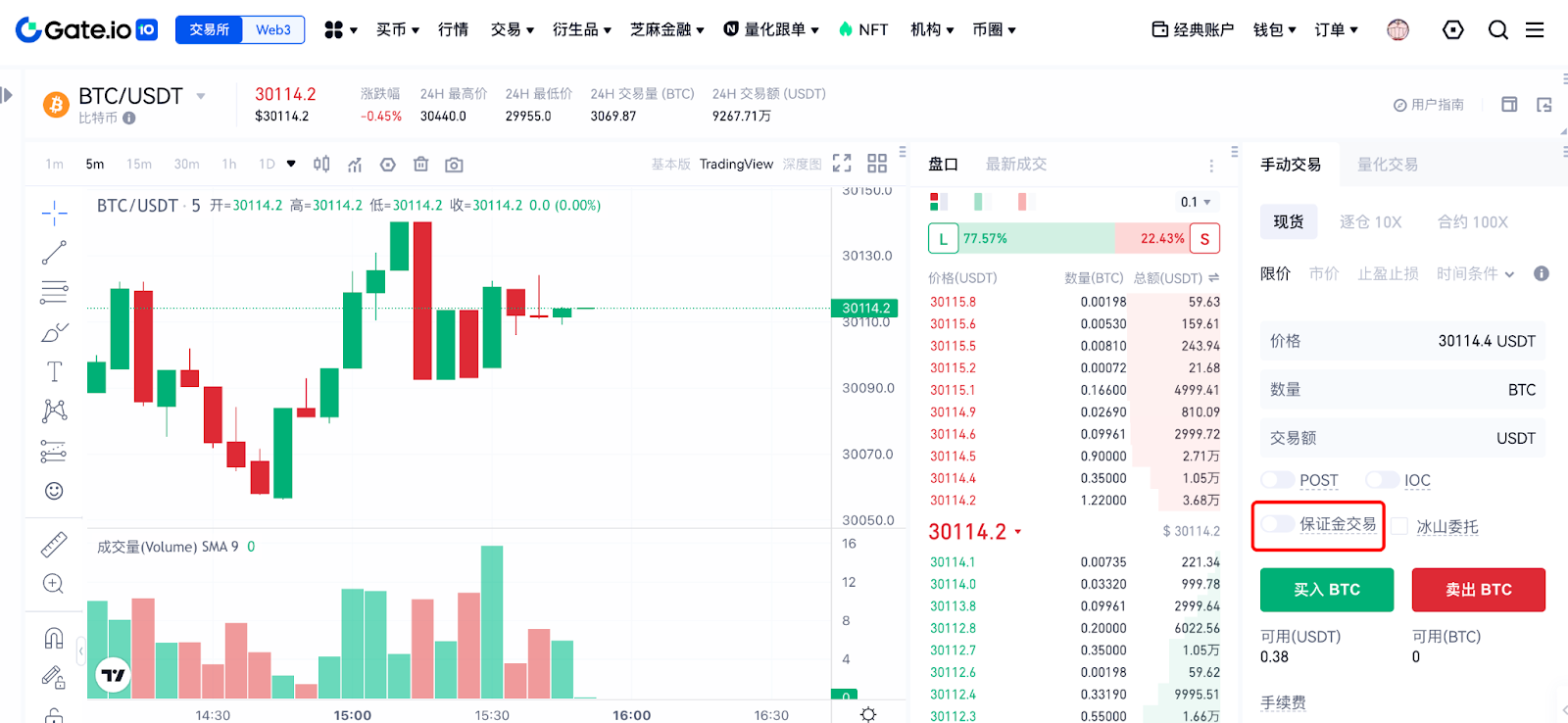 1、方法一:导航栏的“交易”——“现货交易”,进入现货交易页面,右侧下单区中打开“保证金交易”开关。