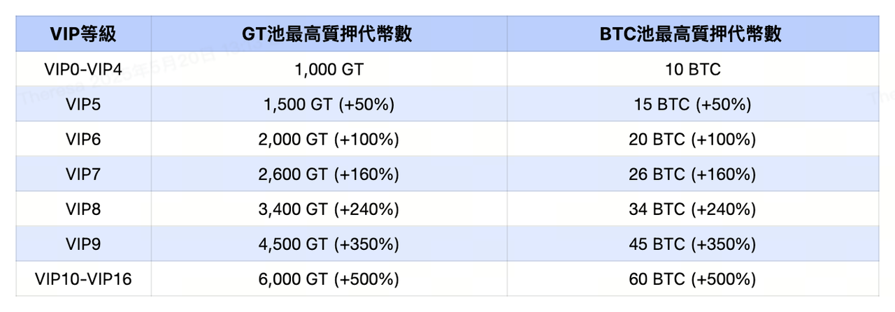 VIP5 及以上用戶參與Launchpool享有專屬質押額度提升權益,最高可享500%質押額度加成。