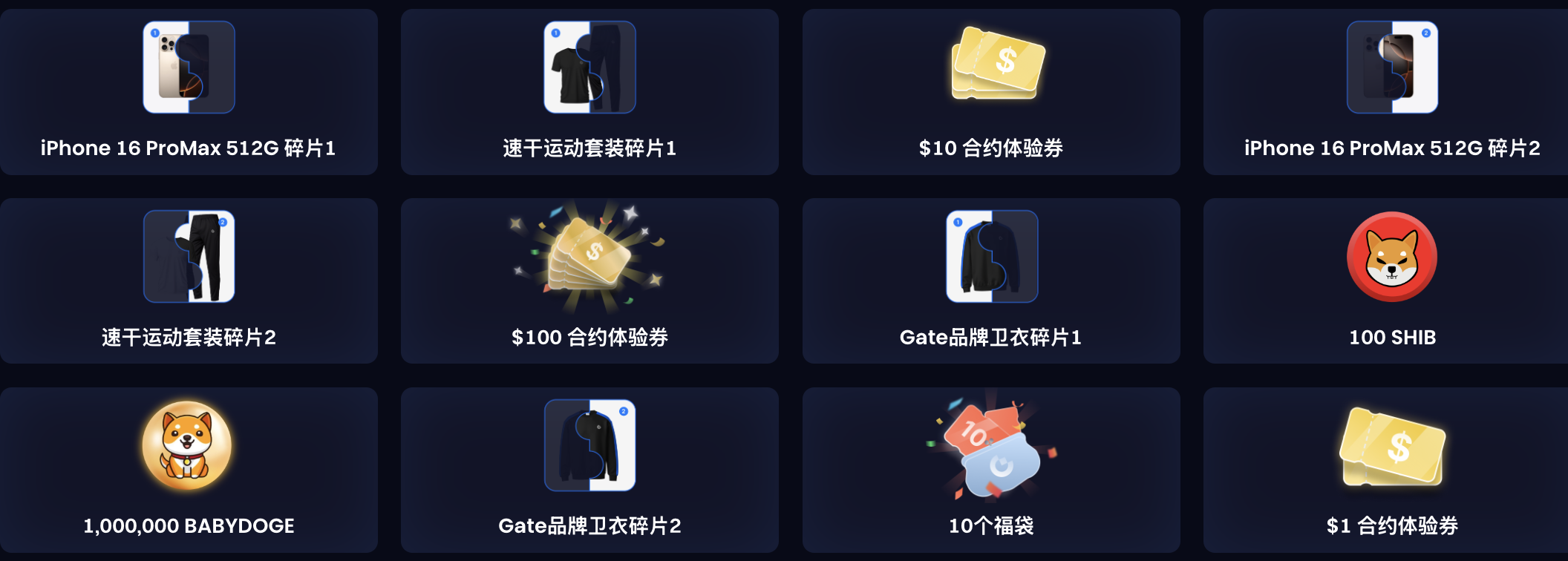 - 週邊和實物獎勵將在活動結束後60日內,審核符合發獎條件後會自動完成空投發放,請注意留意您的物流信息;若因物流原因導致獎勵無法送達,週邊獎勵將以等值合約體驗券形式發放,其中iPhone 16 Pro Max 512G以$1,000 合約體驗券,Gate品牌衛衣以$20合約體驗券,速乾運動套裝以$20合約體驗券發放。