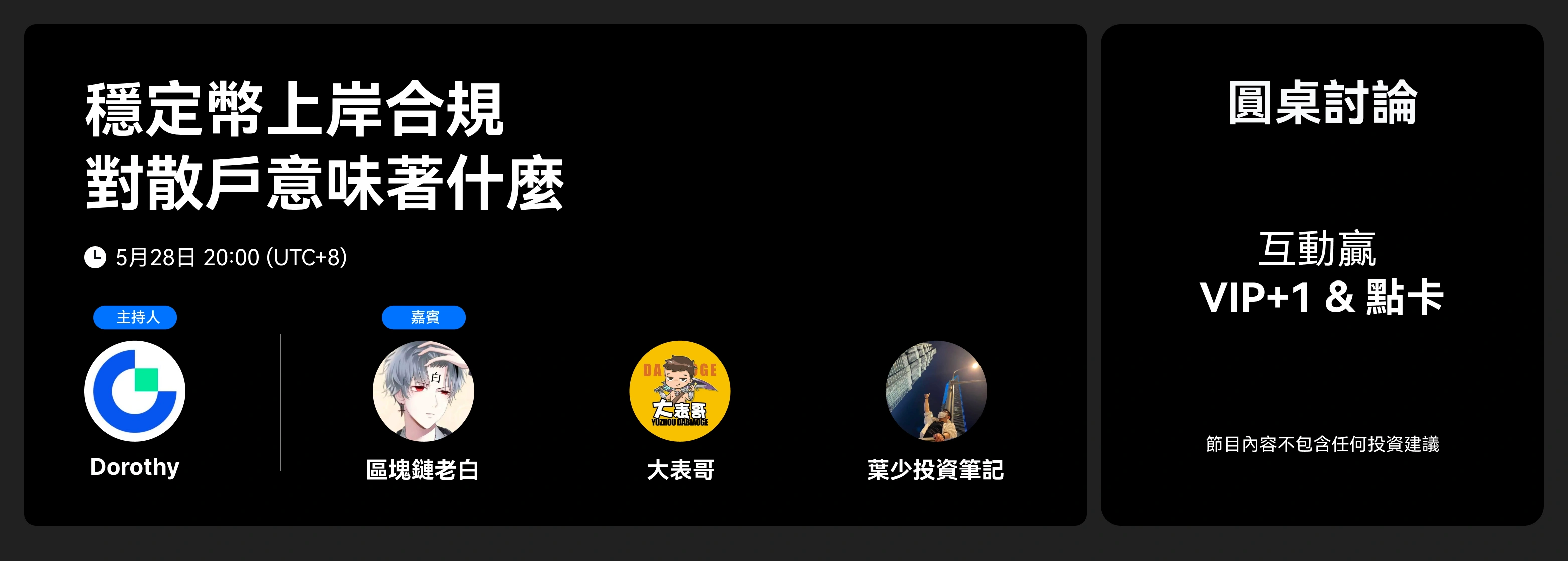 GateLive將於 5月28日 20:00(UTC+8)舉辦直播欄目《圓桌討論》。我們將邀請三位區塊鏈研究員, 共同探討穩定幣合規對加密貨幣行業的影響。 觀看直播,直播間免費領空投: