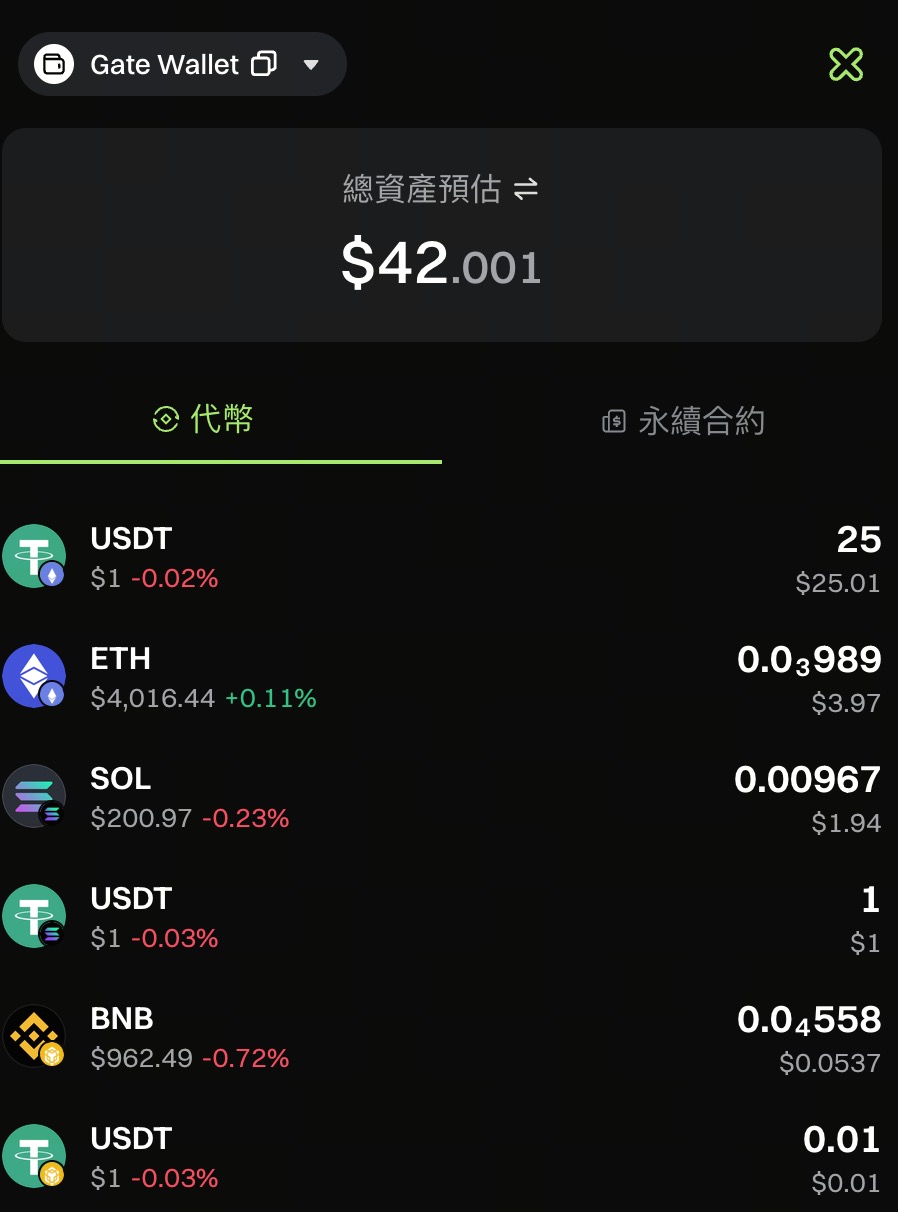 查看資產,點擊右上角「錢包」 → 「代幣」,可查看到充值的資產