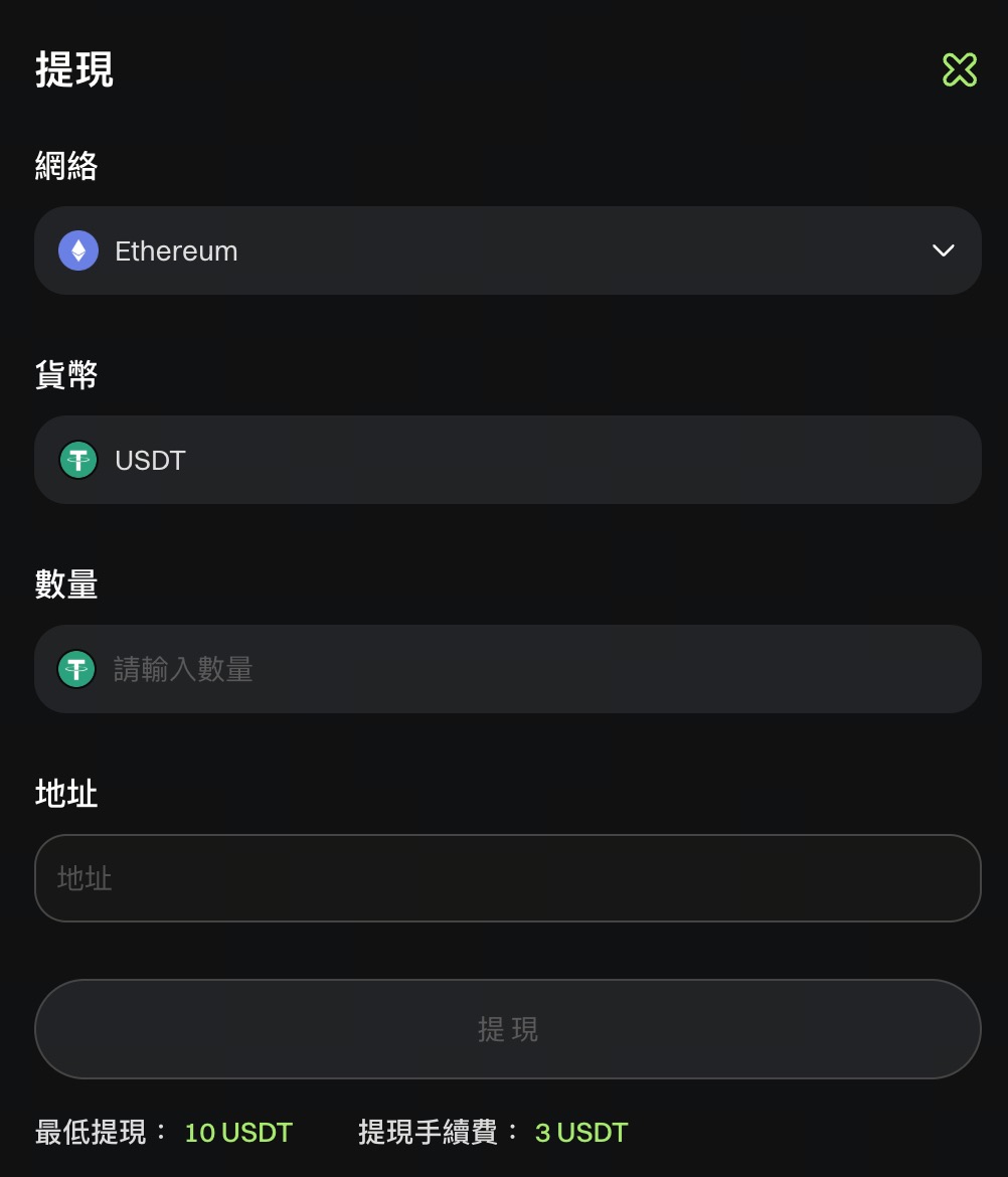 入口位於 「錢包」 → 「提現」,或直接使用頁面右下角的快捷提現按鈕