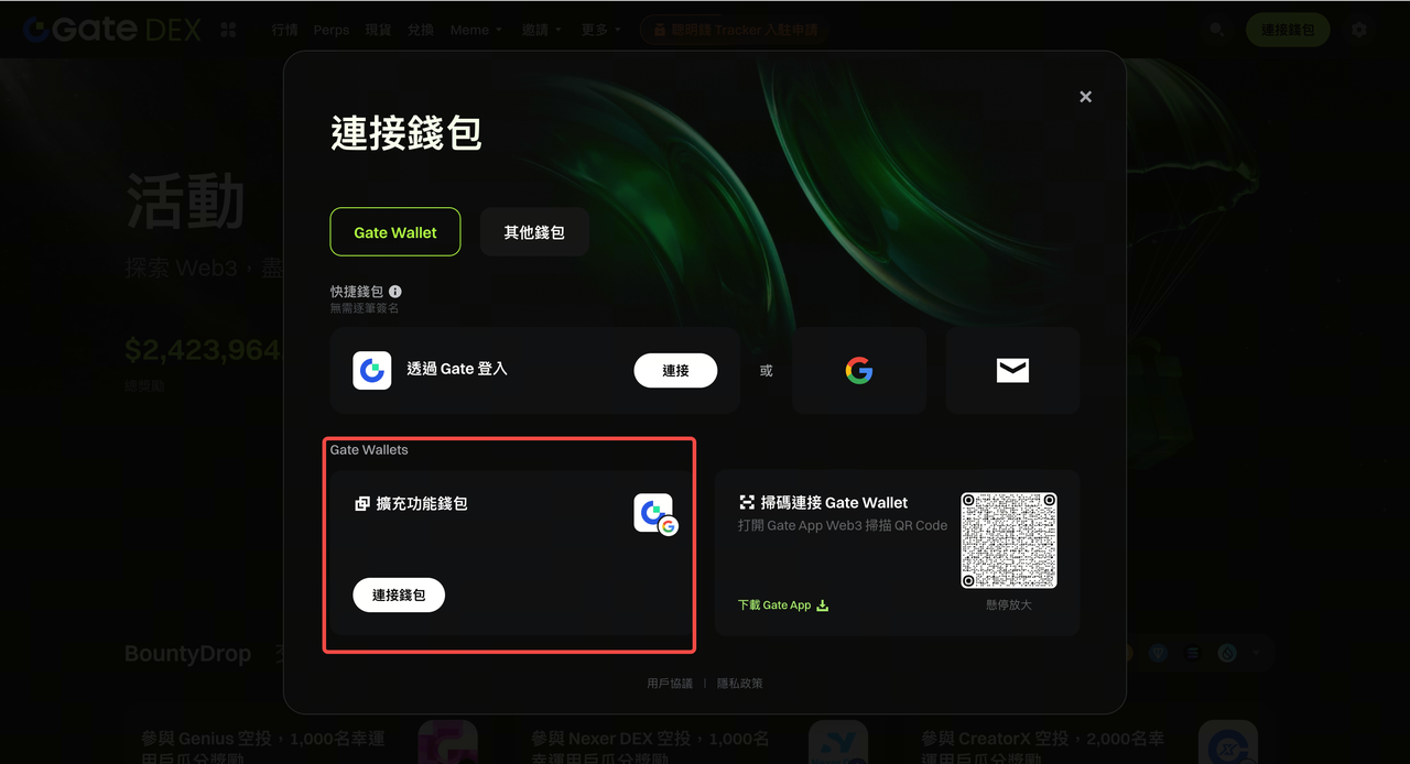 2)請選擇 Gate Wallet 插件錢包進行連接。當前網頁版僅支援使用 Gate Wallet 插件錢包參與 BountyDrop,暫不支援其他錢包。