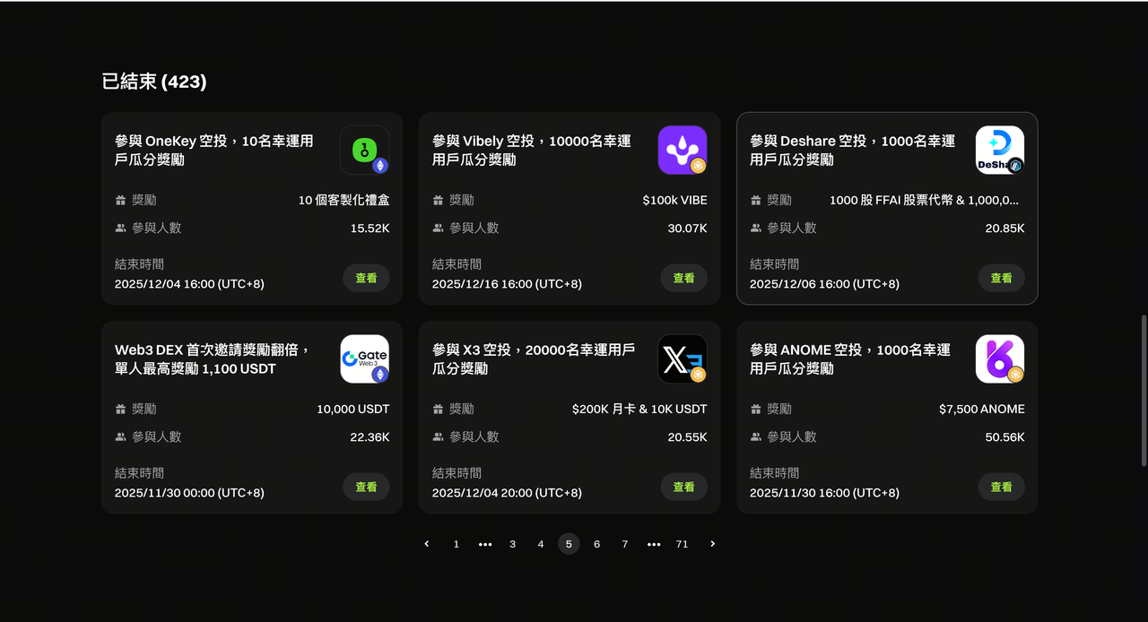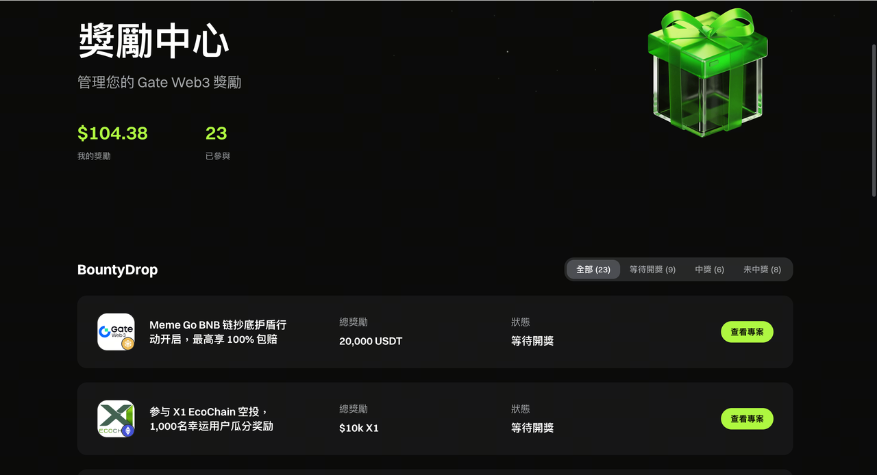 用戶可在獎勵中心統一查看已參與的專案及對應的獎勵金額,並查看專案狀態,包括等待開獎、已中獎及未中獎等情況。