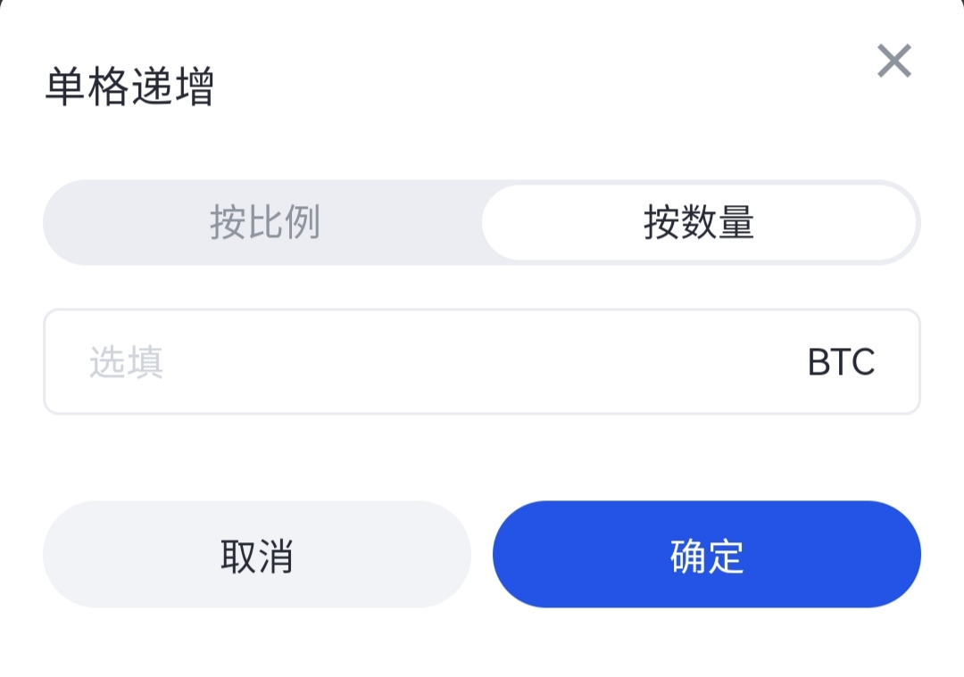 單格遞增: 數量遞增默認是關閉狀態,在開啟時,您可以選擇按照數量或按照比例來增加每個網格的買賣數量,如圖所示:
