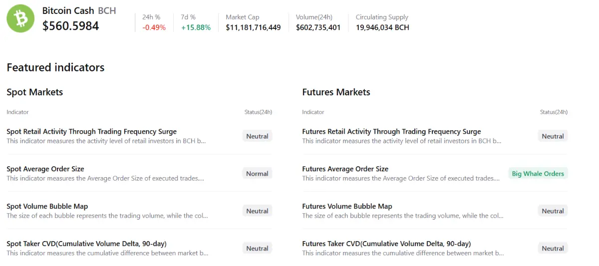 截至撰寫本文的周四,比特現金(BCH)的價格穩定在560 USD附近,接近重要的阻力區域。目前鏈上的數據仍然中性,但期貨市場已經開始出現一些積極信號,反映出樂觀的情緒正在交易者中蔓延。從技術面來看,若能在565.1 USD的水平上果斷收盤,則可能確認短線上漲的回歸,爲BCH更強勁的收復失地預期打開了大門。