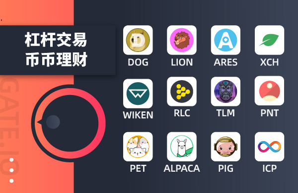 Gate现已开通DOG、LION、ARES、XCH、WIKEN、RLC、TLM、PNT、PET、ALPACA、PIG、ICP的杠杆交易和理财借出服务。