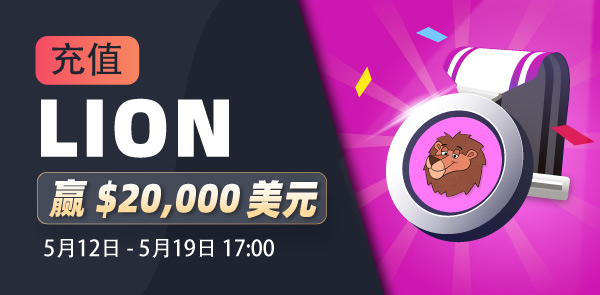 ·2021年5月12日-5月19日,Gate LION充值赛,赢$20,000美元大奖