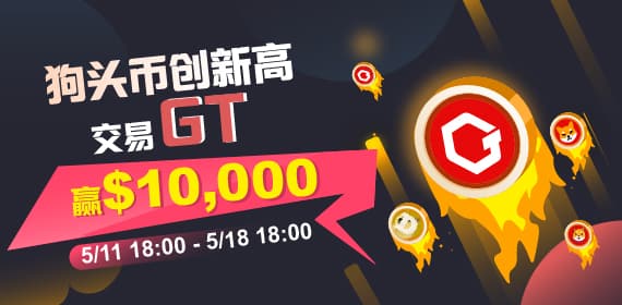 ·2021年5月11日-5月18日,Gate GateToken (GT) 创新高,交易GT (狗头) 赢10,000美金及100个硬件钱包