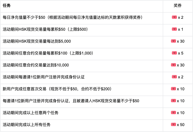 活动期间新注册用户,参与活动完成任意任务获得2张奖券,即可额外获得$5专属奖励,总奖池$3,000,先到先得。