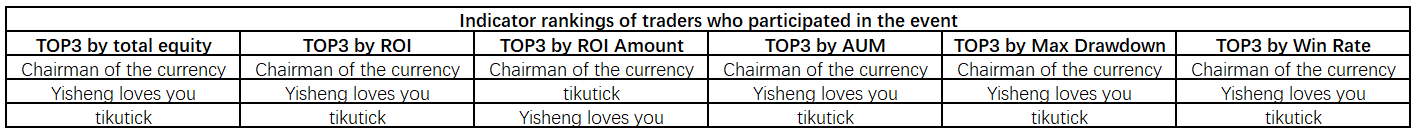 Thank you very much to every lead trader who actively participated in this event . For lead traders who cannot get the upgrade benefits or fail to participate in this event, we will launch the upgrade competition #9 and other activities in the future. Looking forward to your participation!