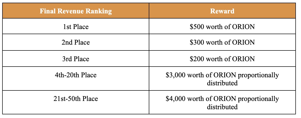 During the event, users who join the Gate Liquidity Mining Telegram Group and participate in the trades of designated liquidity mining pools with the amount of a single lock-up no less than 500 USDT and two or more trades, and are finally listed in the top 50 users in terms of final revenue will share the ORION reward equivalent to $8,000.