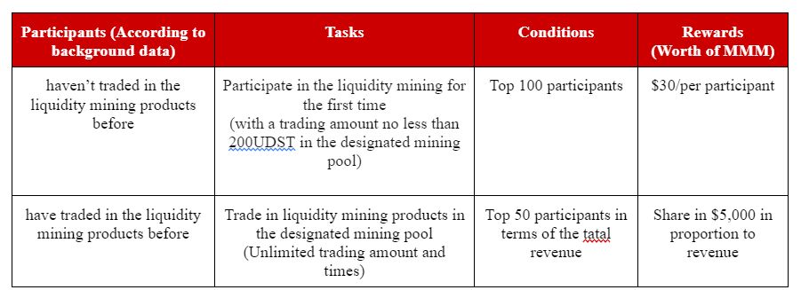During the event, the official will randomly select 100 participants from all users who join this Gleam task to give $10 MMM/per participant.