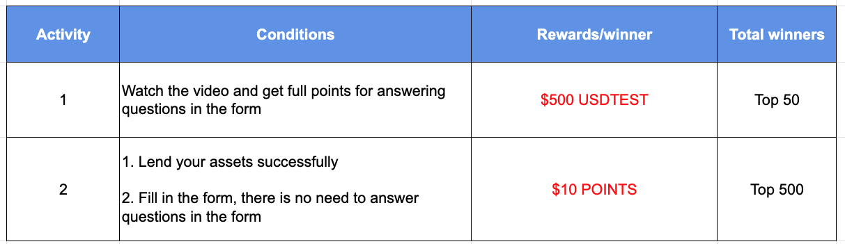 What are Lend & Earn products? How can users use them and set the lending rate? Now all of you can join Gate Lend & Earn quiz #2 to get the answers to these questions. After you browse the reading material and get full points for answering questions in the form, you can receive $500 USDTEST. On top of that, if you use Lend & Earn products and lend your assets successfully, you will win an extra bonus of $10 in POINTS! The prize totals $30,000. Come and share the prize now!