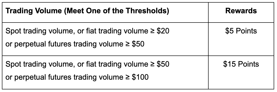 Users, who have registered but without any deposits or trading from 05:00 AM, March 17 to 01:59 AM, April 17 (UTC) with KYC2 verification, can earn more rewards by trading more during the event.