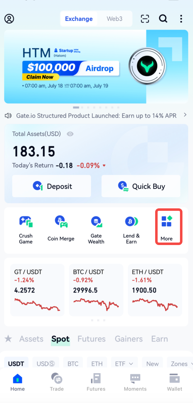 1.enter Gate Homepage on APP-Click"More"