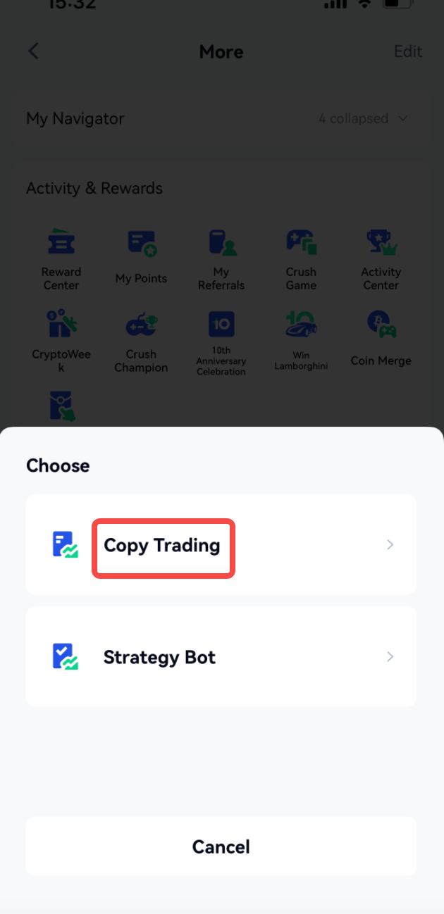 3.Choose "Copy Trading"