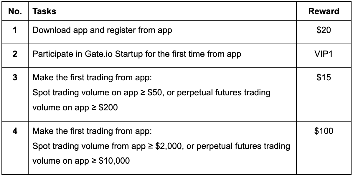 If you are new to Gate without an account, or have registered but never completed any trading and have never participated in Gate Startup, complete the following tasks to win multiple perks!