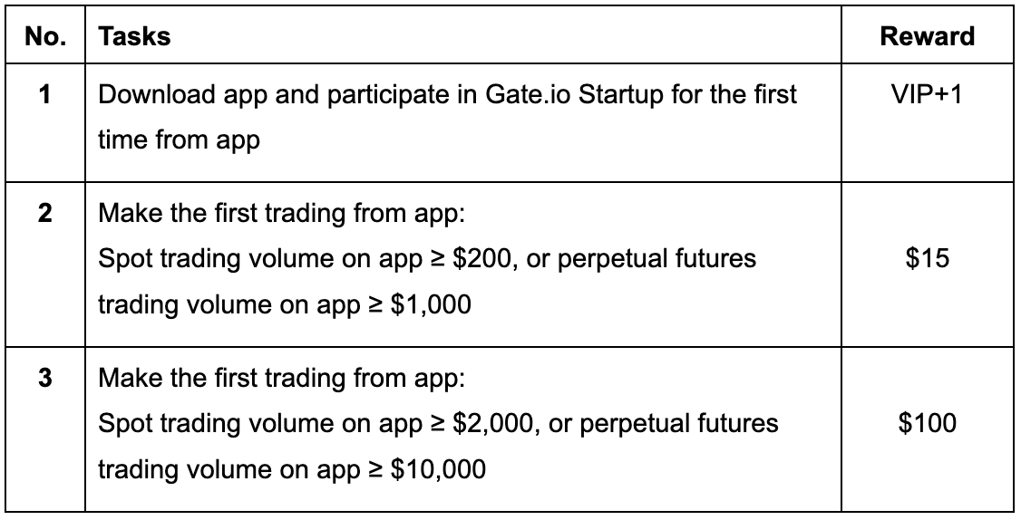 If you are one of Gate old friends already with an account, but have never completed trading from Gate app and have never participated in Gate Startup, don’t miss out on the exclusive perks!