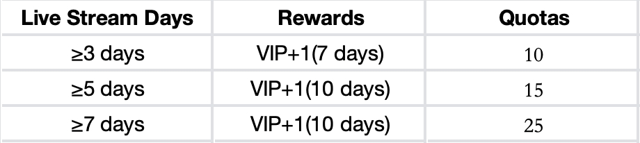 المكافآت: يمكن لمنشئي البث المباشر الفوز بهدايا المعجبين بناءً على العدد التراكمي لأيام البث المباشر