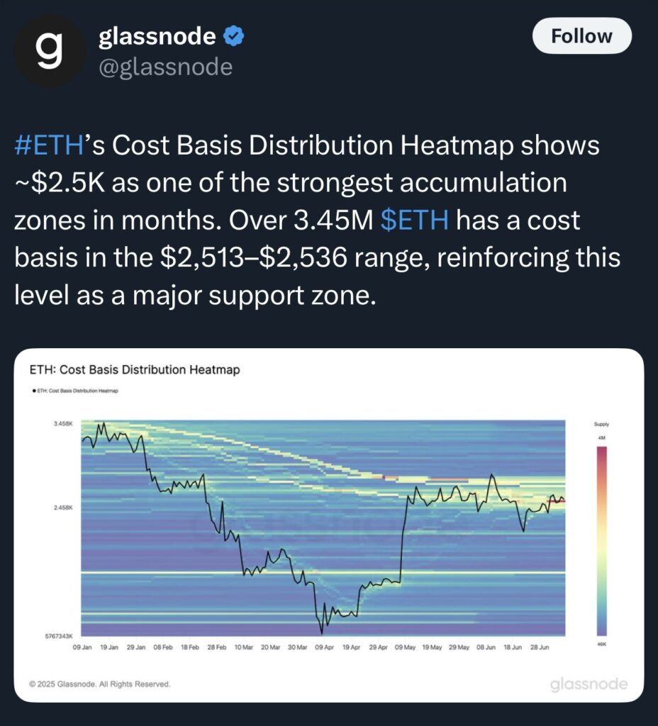 وفقًا لخريطة توزيع التكلفة الأخيرة من Glassnode، فإن أكثر من 3450000 ETH تتراوح أسعارها بين 2513 دولارًا و2536 دولارًا. وهذا يشير إلى أن معظم المستثمرين على المدى الطويل كانوا يقومون بتعزيز مراكزهم في هذه المنطقة، حيث أن العديد منهم يقومون حاليًا بتحقيق أرباح طفيفة. وتعمل هذه المنطقة حاليًا كدعم نفسي وتقني؛ ولا ينوي المستثمرون حاليًا البيع في هذه المنطقة.