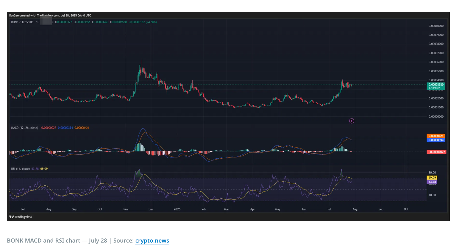 **إدراج غرايسكيل في قائمة المراقبة يزيد من وعي المؤسسات: ** غرايسكيل (Grayscale ) مؤخرًا أدرجت BONK في قائمة المراقبة المؤسسية للربع الثالث من عام 2025، مما يدل على إعادة تصنيف المؤسسات الرئيسية لهذه العملة الميمية. هذه الخطوة دفعت بعض الحائزين إلى اعتبارها أصل ذو إمكانات للمشاركة في سوق واسع، بدلاً من كونها مجرد أداة مضاربة، مما يحسن بشكل ملحوظ من التوقعات السوقية.
