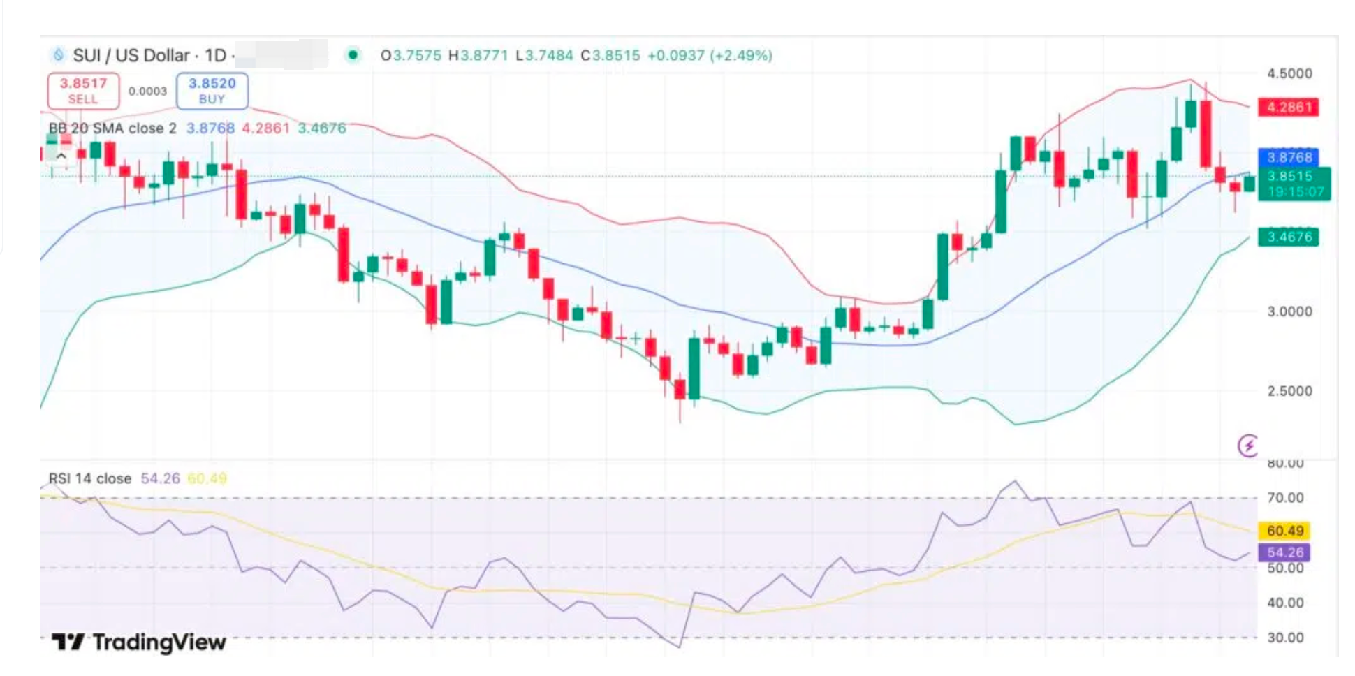 حتى وقت النشر، كان سعر تداول Sui (SUI) هو 3.85 دولار، مع زيادة تراكمية بنسبة 38% خلال الشهر الماضي. وقد استفادت هذه الجولة من الارتفاع من زيادة النشاط داخل السلسلة و الدعم من الأساسيات القوية للبيئة.