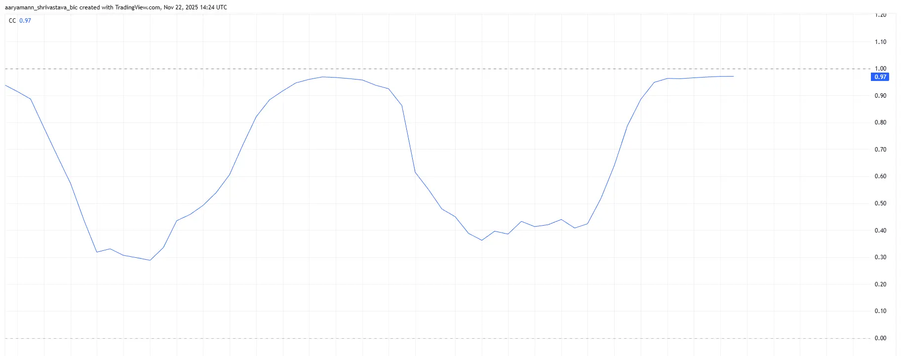 تبلغ علاقة هيديرا مع بيتكوين حاليًا 0.97، وهو أحد أعلى مستوياتها في الأشهر الماضية. تشير هذه العلاقة القريبة من الكمال إلى أن HBAR تعكس بشدة حركة سعر بيتكوين.