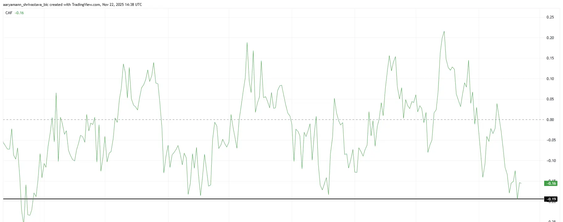 يقيس CMF ضغط الشراء والبيع، وقراءة سلبية عميقة تشير إلى أن المستثمرين يسحبون الأموال بوتيرة متسارعة.