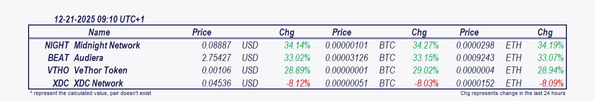العملات و العملات التي تحركت أكثر في الساعات ال24 الماضية:
