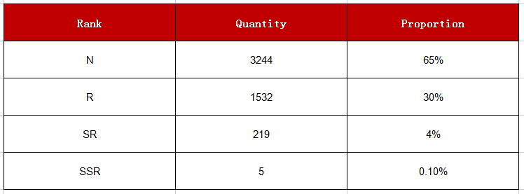 The degree of rarity is in the order of: SSR>SR>R>N.