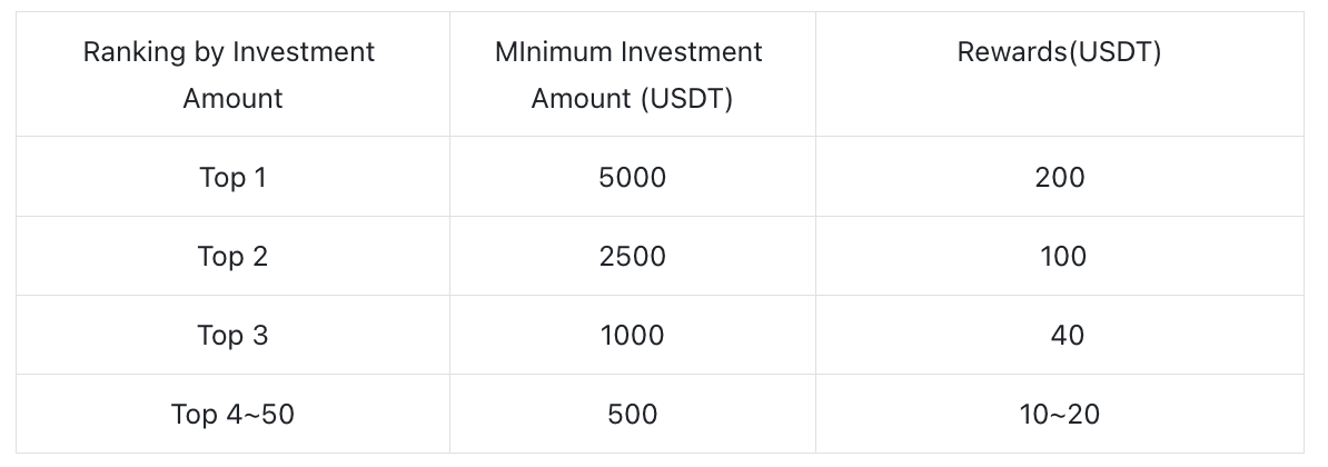 Ranked according to the investment amount of copiers, the Top 200 users can get a fixed amount of rewards as follows: