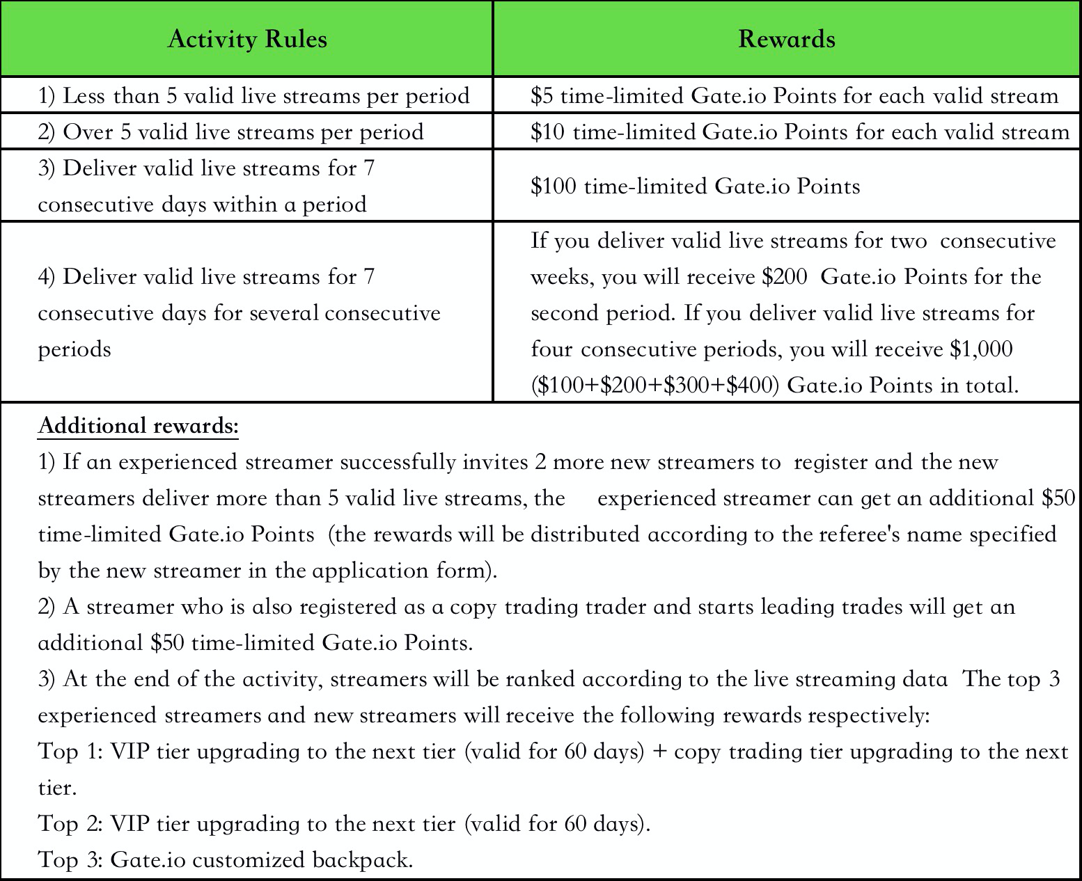 - Avantages surprises : Les streamers diffusant régulièrement du streaming en direct et faisant preuve d'excellentes performances recevront des cadeaux personnalisés et des avantages exclusifs de Gate.