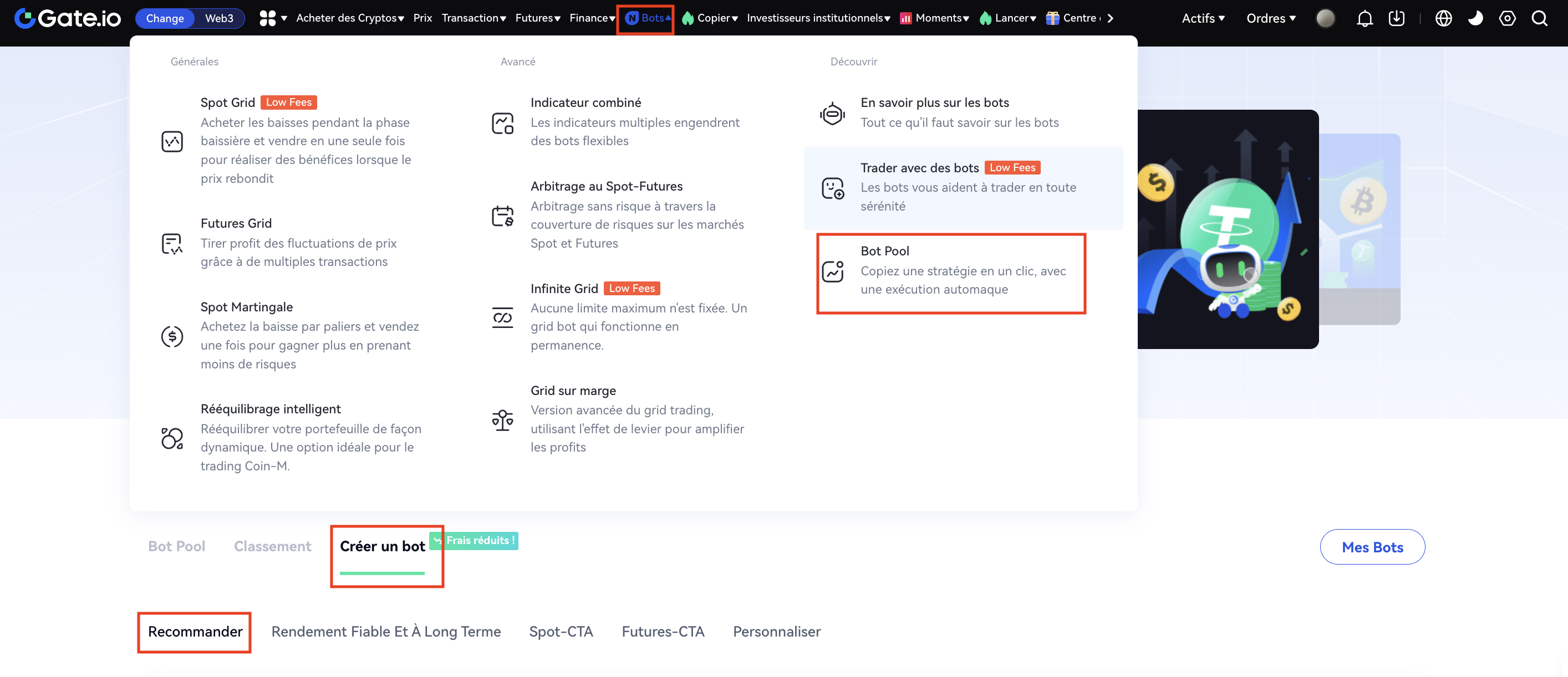 Barre de navigation - "Copy Trading"-"Strategy Bot"-"Create A Strategy"-"Recommend"-"Margin Grid"-"Create Strategy". Choisissez ensuite la paire de trading, définissez les paramètres et cliquez sur "Créer". Comme le montre la figure ci-dessous