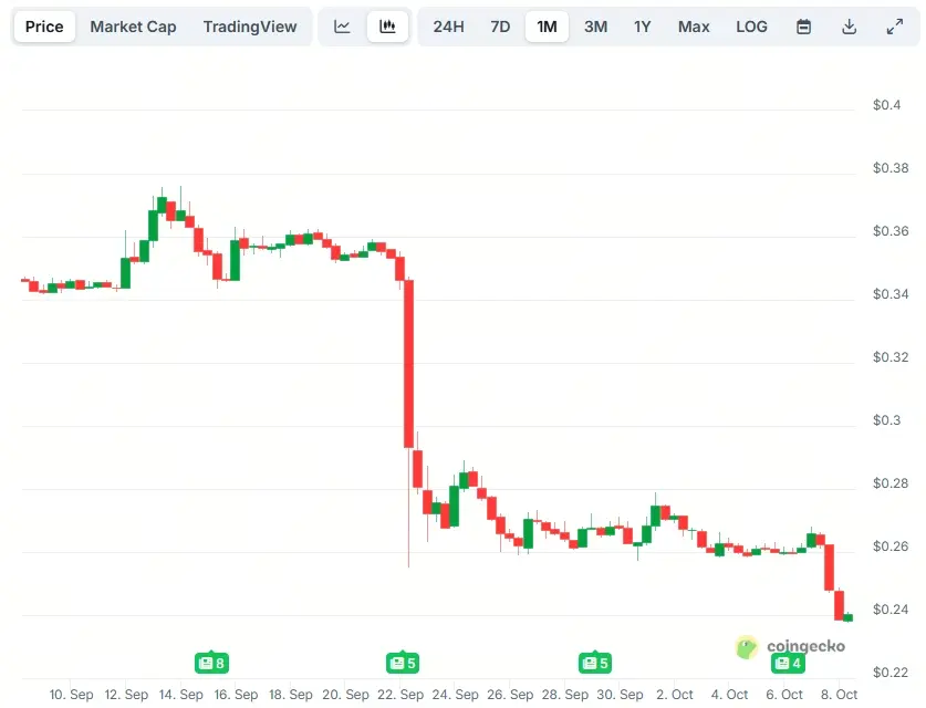 Le 9 octobre, le prix du jeton natif de Pi Network a chuté à un niveau historiquement bas, environ 0,23 dollar, la chute catastrophique a déclenché la panique sur le marché.