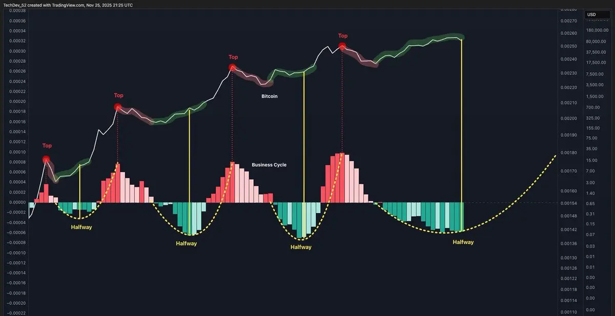 Il attribue à TechDev le visuel, le qualifiant de la représentation la plus claire à ce jour de la position de la crypto dans le cycle actuel.
