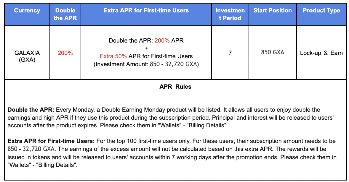 1.Semua pengguna yang telah menyelesaikan KYC dapat mengikuti promosi ini。APR ekstra hanya untuk pengguna baru yang terdaftar yang menggunakan produk ini。