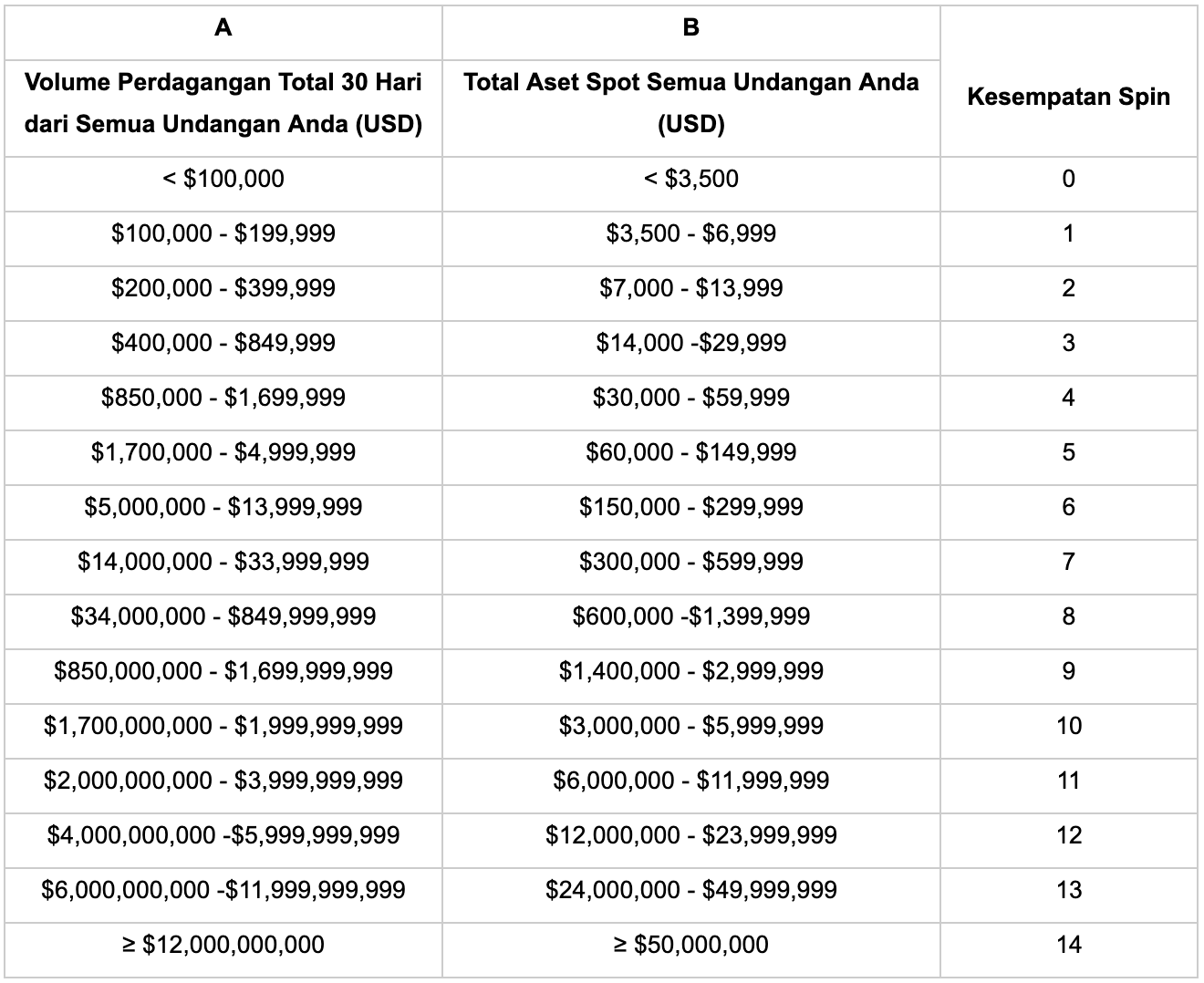 3.Hanya volume perdagangan spot atau aset spot dari para undangan yang telah menyelesaikan verifikasi KYC1 ke atas yang akan dihitung;
