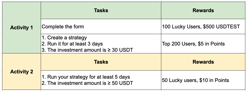 ❗️Only users who have created a strategy during the event and filled out the form can get a chance to win rewards.