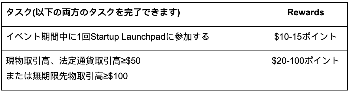 🎁イベント1:登録してStartup Launchpadのホワイトリスト獲得&取引して$20,000の山分けを得よう