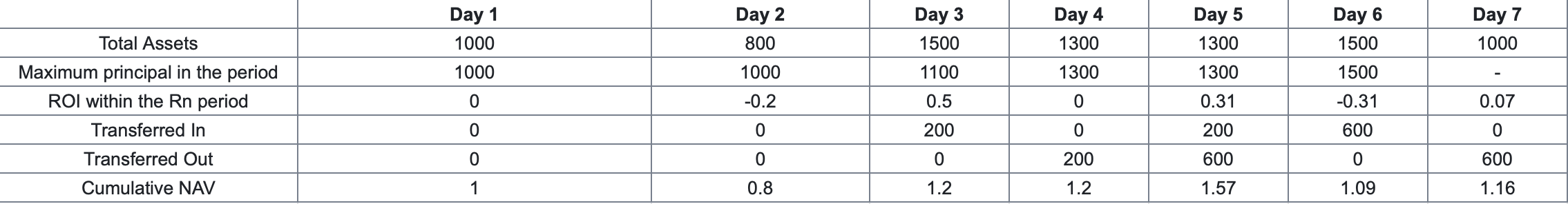 1.リードトレーダーがリードを開始すると、ROI計算用の初期NAVは1に設定され、NAVは1時間ごとに更新されます。