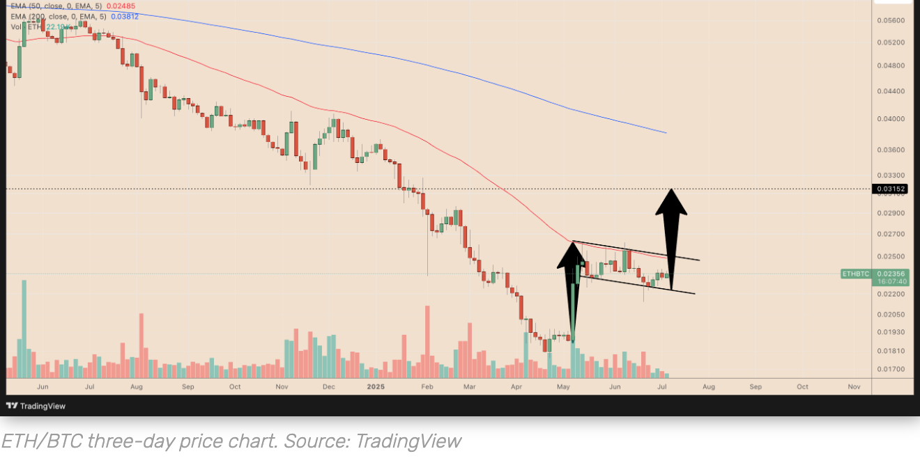 📈 ETH/BTC 強気フラッグパターンが上昇行情を示唆