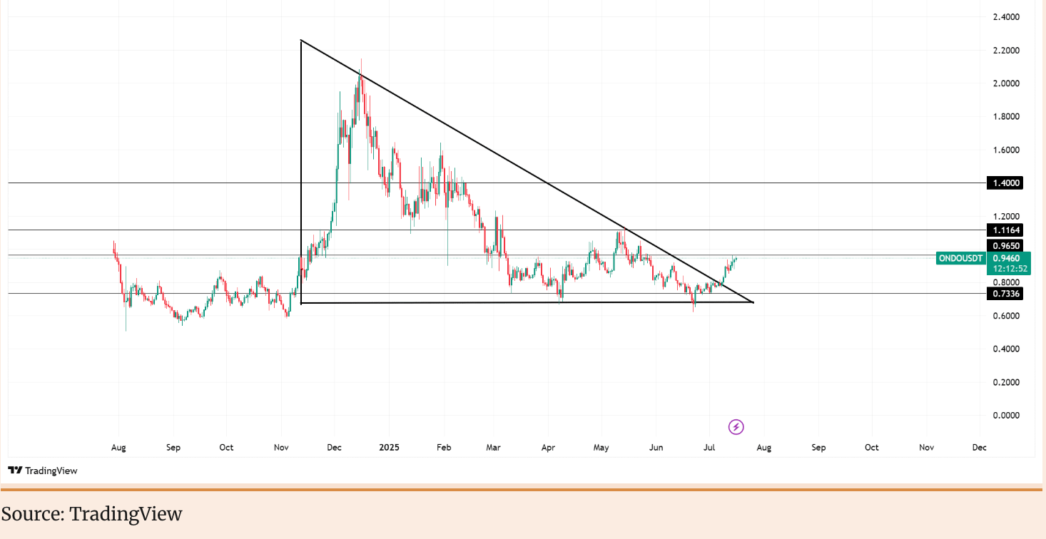 ONDO価格予測:キートライアングル構造のブレイクアウト、複数のモメンタムサポートショック $1.40