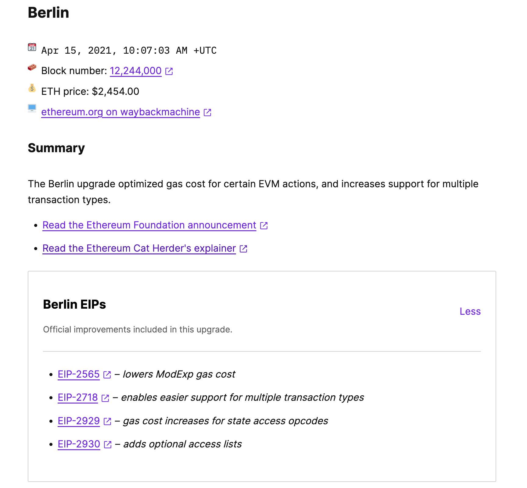 上述内容は EIP-2537 の初期の経緯を示しています。EIP-2537 は初期の Berlin アップグレードにおいて最も重要な EIP の一つでしたが、実装の問題から最終的に廃止されました。最後に、2021 年 4 月にイーサリアムは Berlin アップグレードを完了しました。アップグレードの中核に含まれる EIP-2565 などの実際の実装はそれほど複雑ではなく、Berlin アップグレードはやや薄っぺらに見えるかもしれません。これは、最も核心的で複雑な EIP-2537 が Berlin アップグレードから除外されたためです。