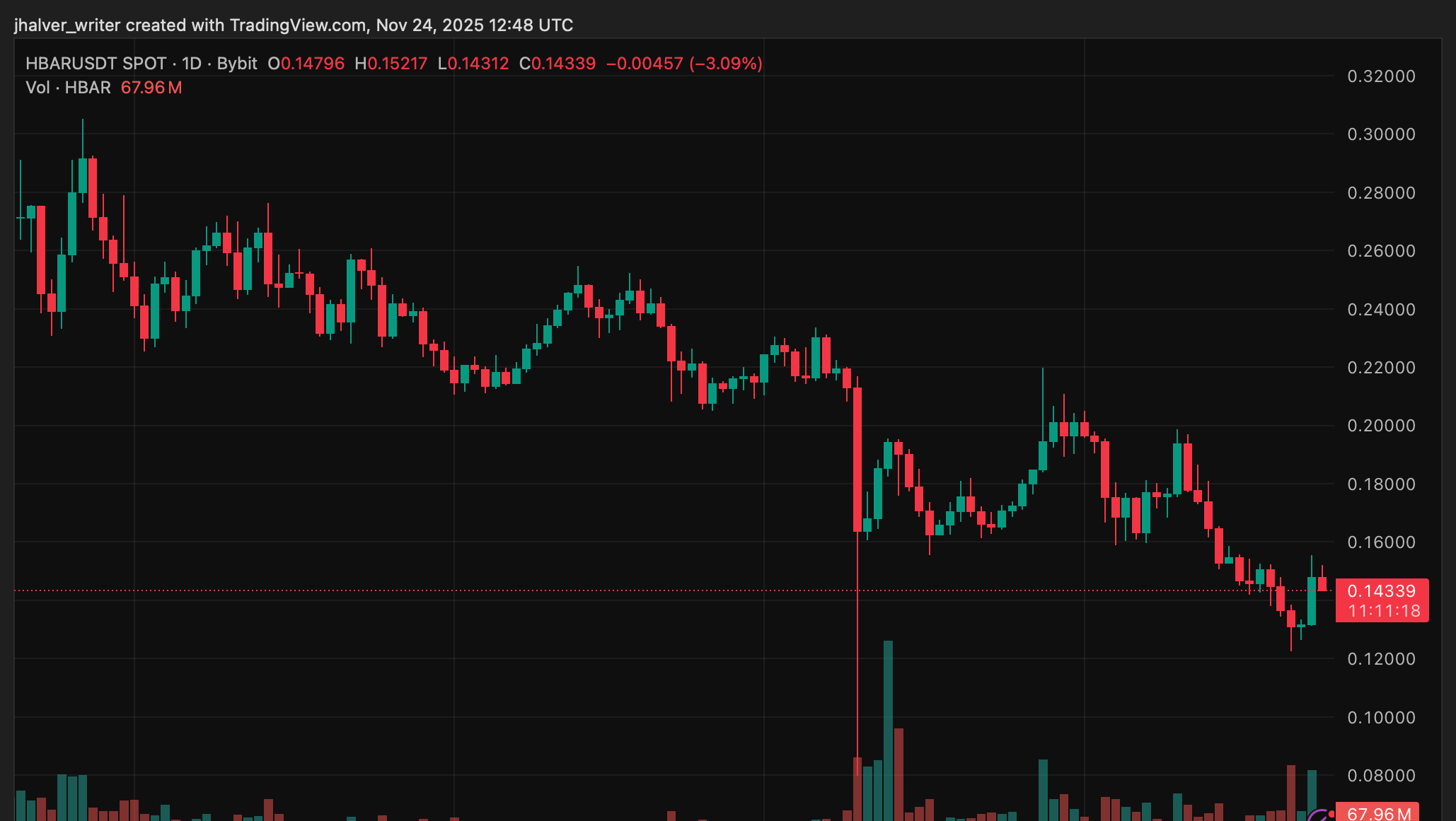 HBARの価格は日足チャートで下向きのトレンドを示しています。
