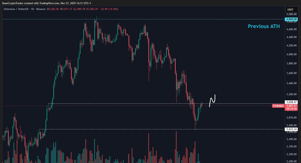 ダーンのコメントは、近年のイーサリアム市場のより広い現実を反映しています:条件は、強い強気または弱気のナラティブに早期にコミットするトレーダーを罰しています。現在の環境は、長期的な方向性の賭けよりも、柔軟性、忍耐、クリーンなレベル間の取引を重視しています。ETHが$2,600–$3,000の抑制ゾーンを脱出するまで、強いトレンド信号は早すぎる可能性があります。